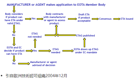 建築建築產品的ETA認證是在歐盟安全CE建築產品規定Construction Products Regulation (EU) No. 305/2011的七大基本要求的基礎上,對產品對於指定應用範圍的技術性能的有力證明。